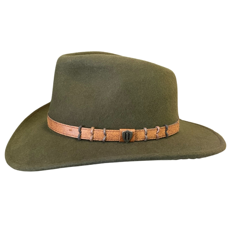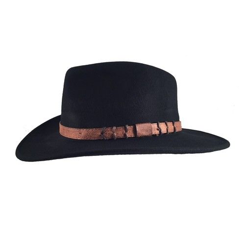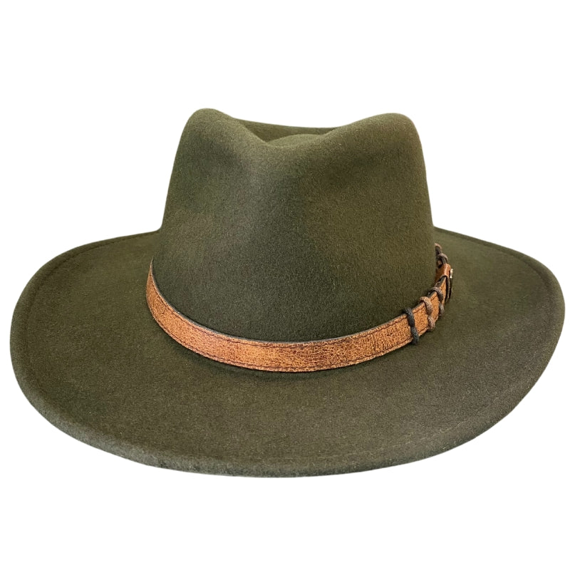 Stay both stylish and practical with this crushable, water repellent wool felt outback hat. Sporting the classic outback shape with a teardrop crown, it's accented with a rustic leather band and has a 7.5cm brim. Choose from sizes Small 55.5-57cm, Medium 57.5-58.5cm, Large 58.5-60cm, XL 60.5-62cm , and XXL 62.5-64cm in either Black or Olive.
